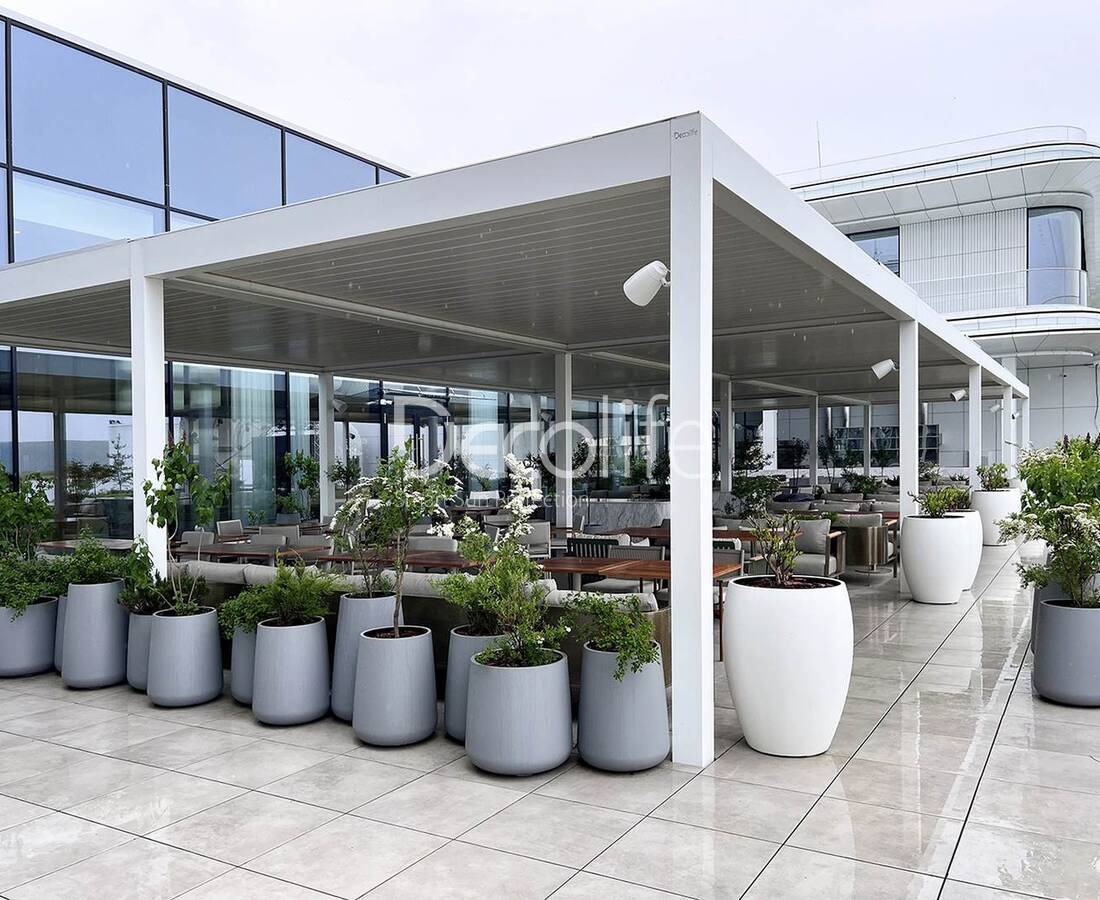 Серия Bioclimatic включает перголы, рассчитанные на использование при любой погоде. В жару конструкции прекрасно защищают от палящего солнца, а во время дождя – от проникновения воды.