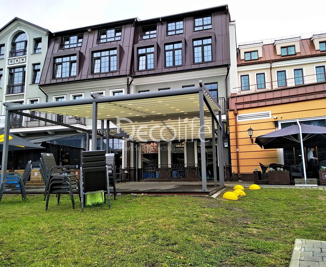 Раздвижная пергола Decolife Basic&Pro New Twin со стальной фермой, кафе Москва City - г. Москва