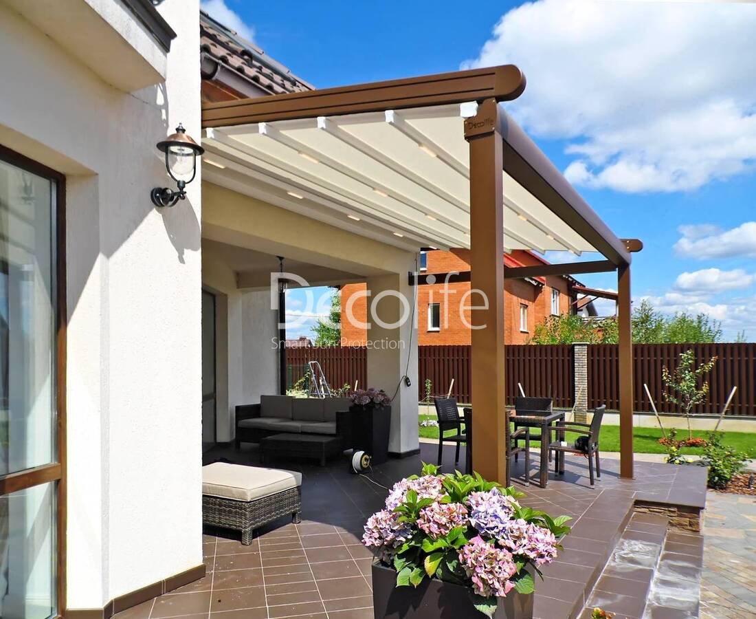 Крыша тентовой перголы сделана их материала, который блокирует дождевую воду и ультрафиолетовое излучение. Системы защищают пространство от нежелательных воздействий и от дискомфорта, связанного с погодными факторами. Стильный дизайн пергол делает их не только внешне привлекательными, но и универсальными, обеспечивая гармоничное сочетание с окружающей обстановкой.
