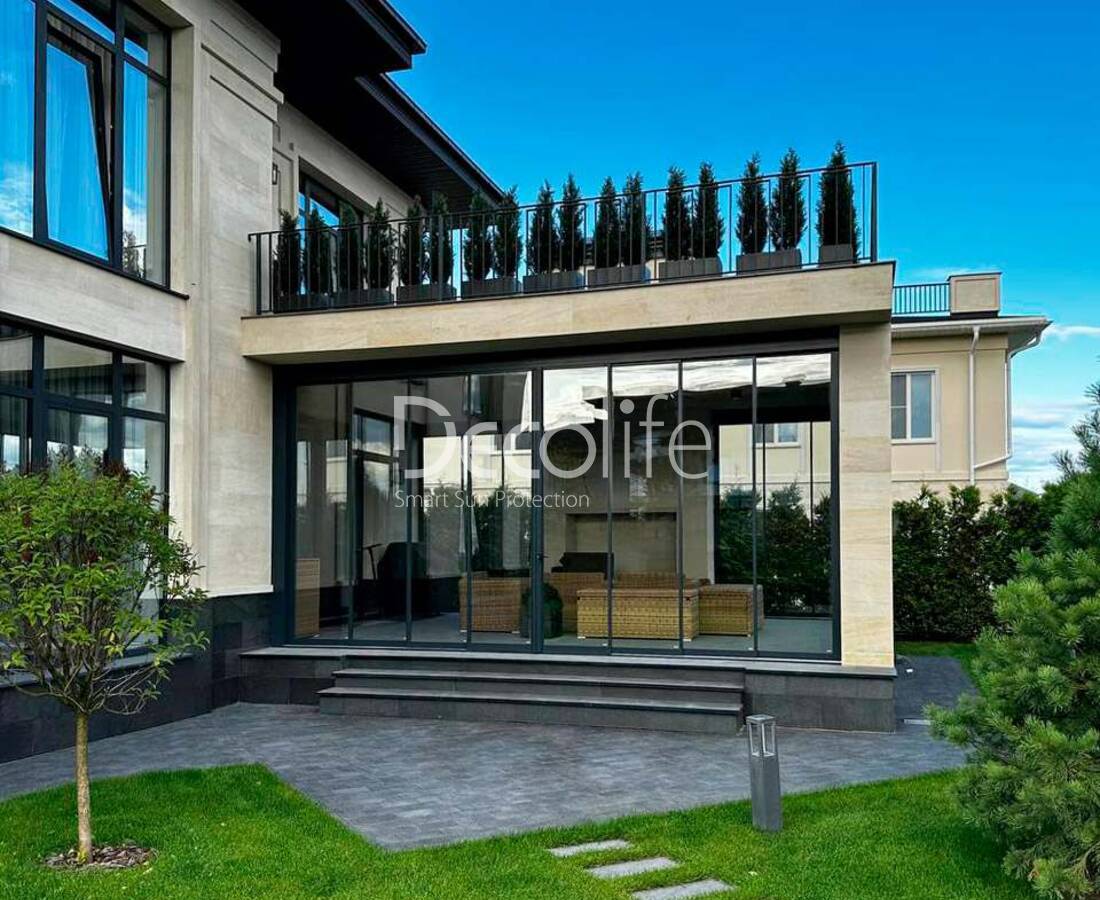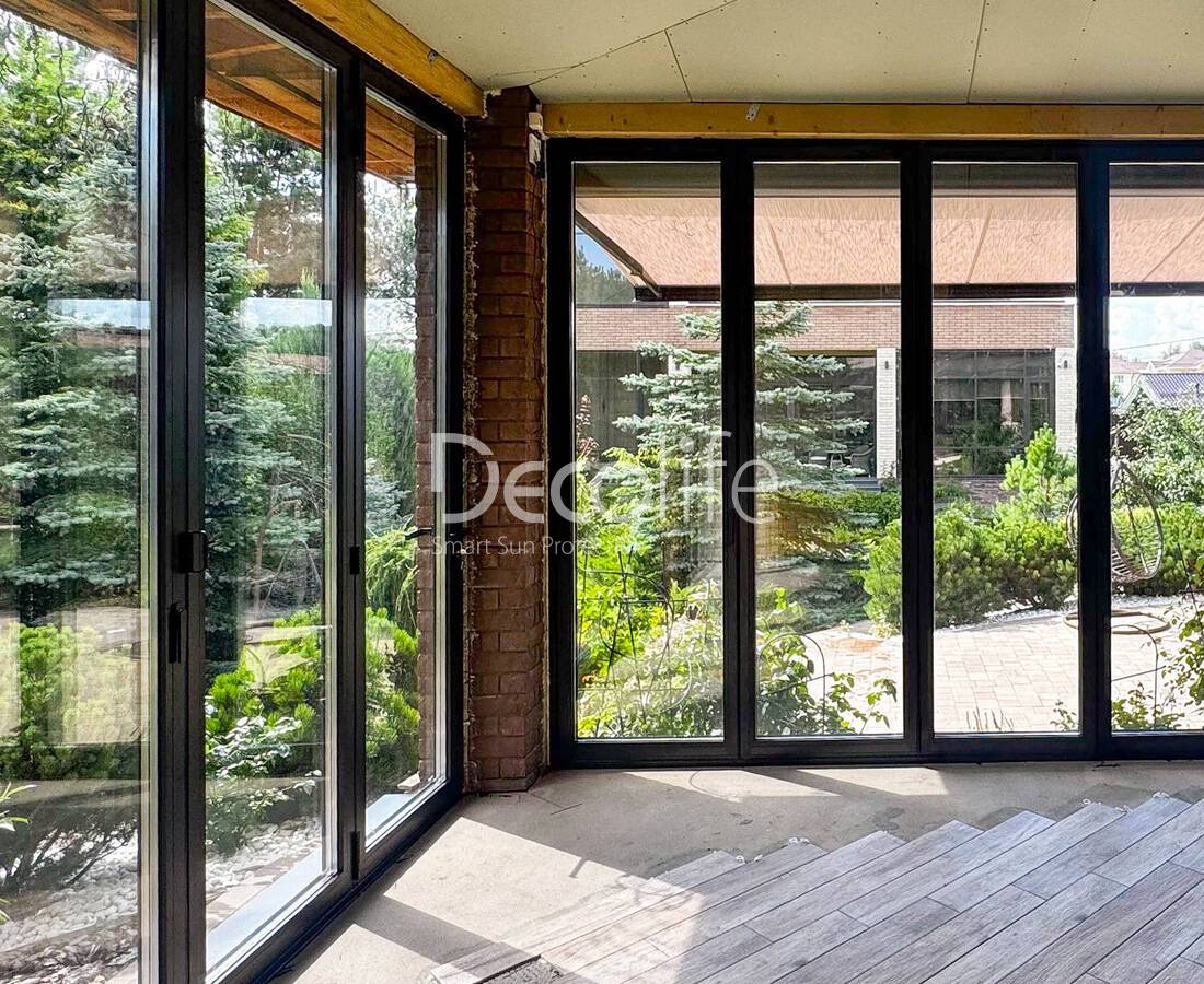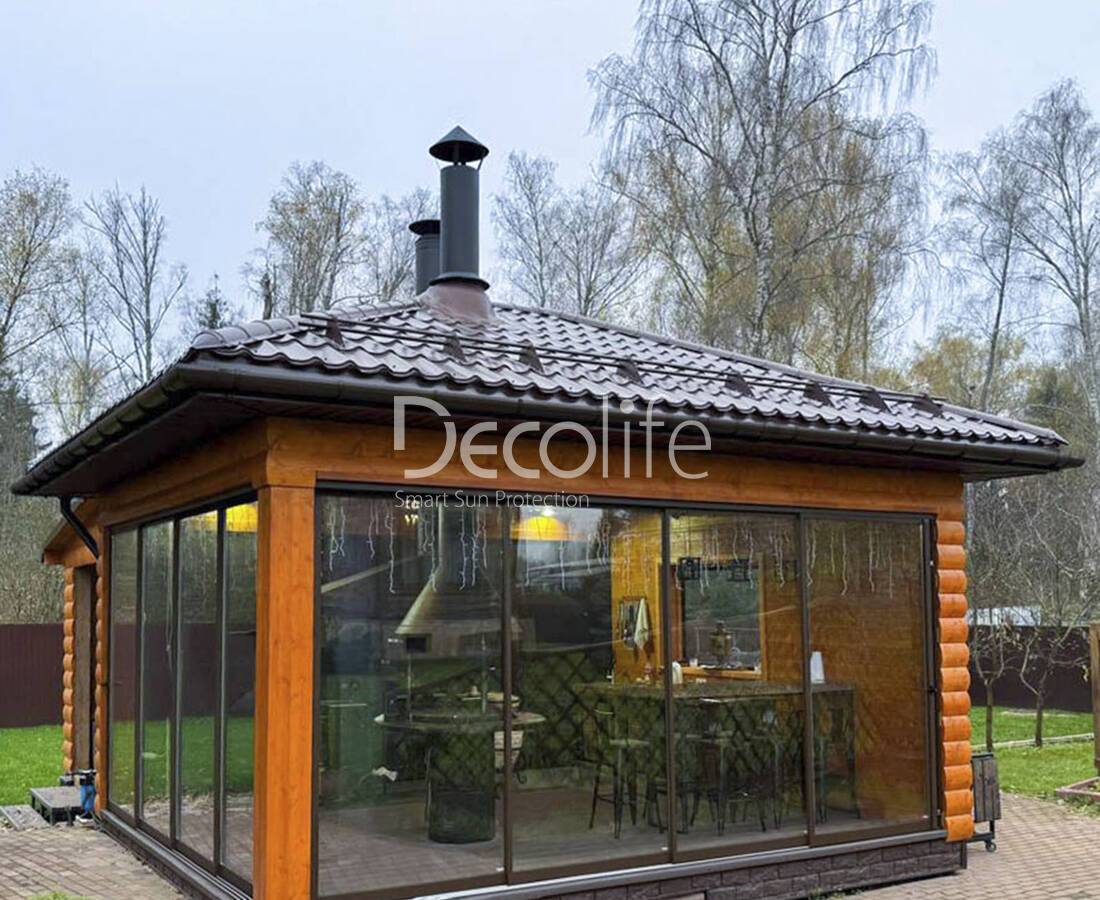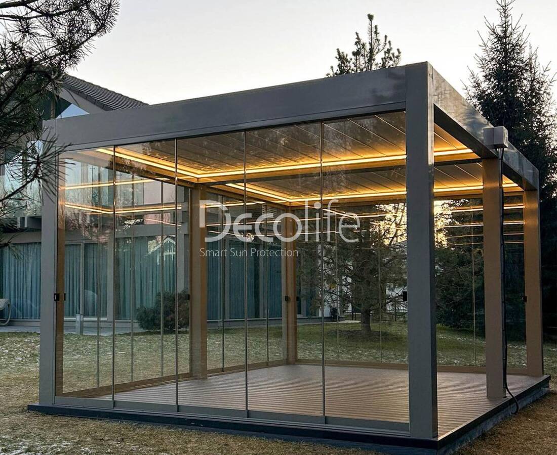 Системы подходят для всех пергол Decolife, обладают отличными характеристиками в плане прочности, долговечности и безопасности. Остекление эстетично смотрится, обладает продуманной эргономичностью.