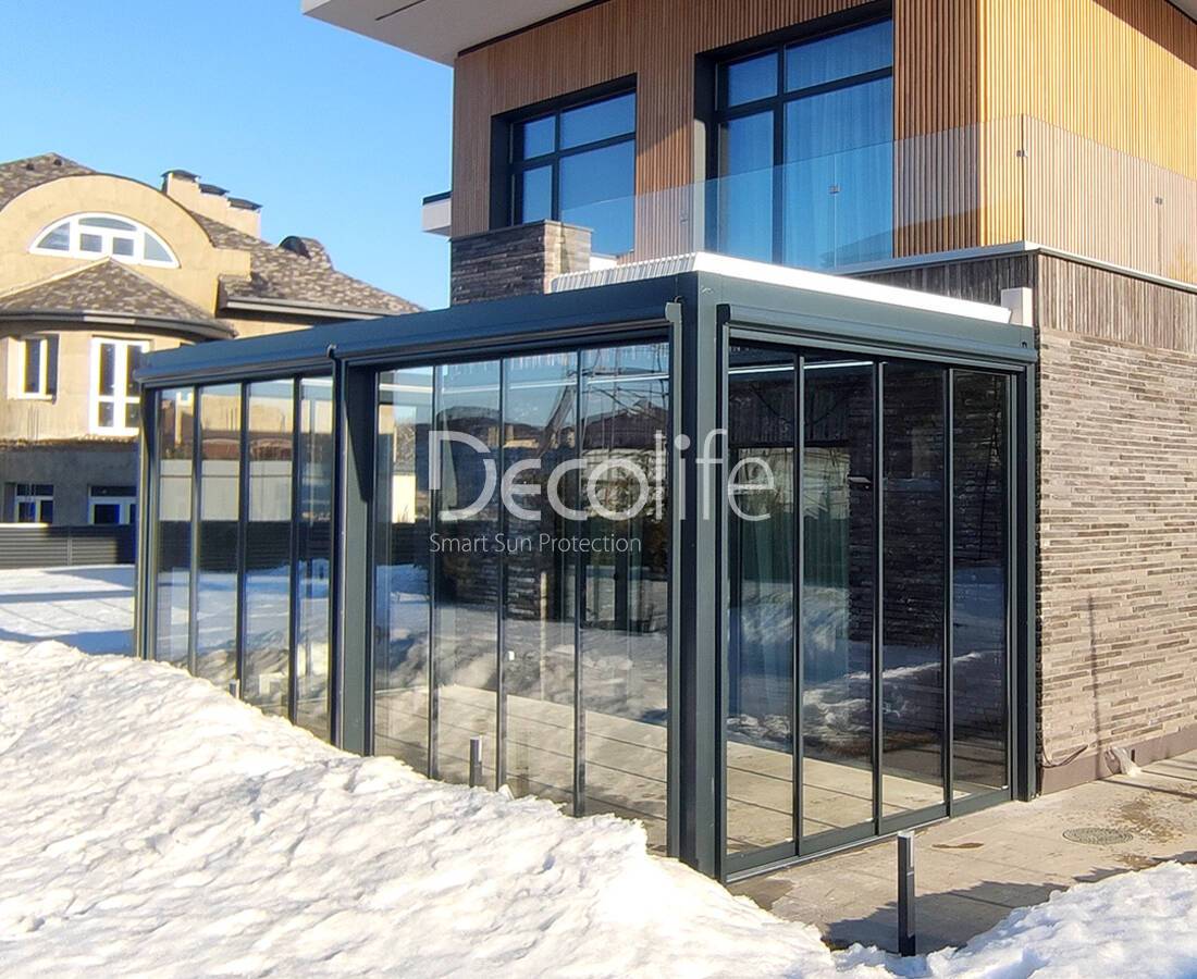 Пергола Decolife Bioclimatic B700-25С + Раздвижное остекление S100 - г. Москва, жк. Снегири